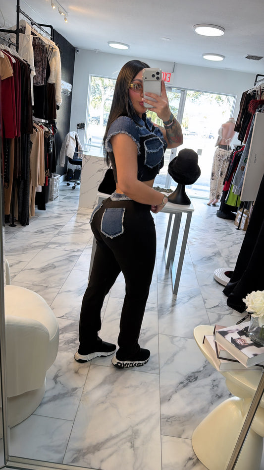 Denim & black set